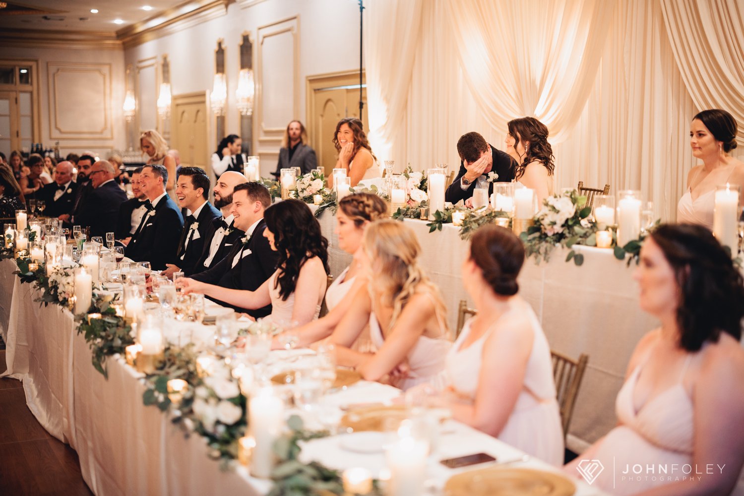 The ceremony was beautiful and you can see the joy and excitement in both Meghan and Johnny. This is where they said their vows to one another in front of their closest friends and family. Afterwards we took some portraits at the church and then headed back to The Drake. It was now time to celebrate Meghan and Johnnyβs love and the start of the next chapter in their lives! The dance floor was packed all night and everyone had such a great time. Before I ended my night, the three of us went outside for some night portraits. It was the perfect way to end an incredible day.